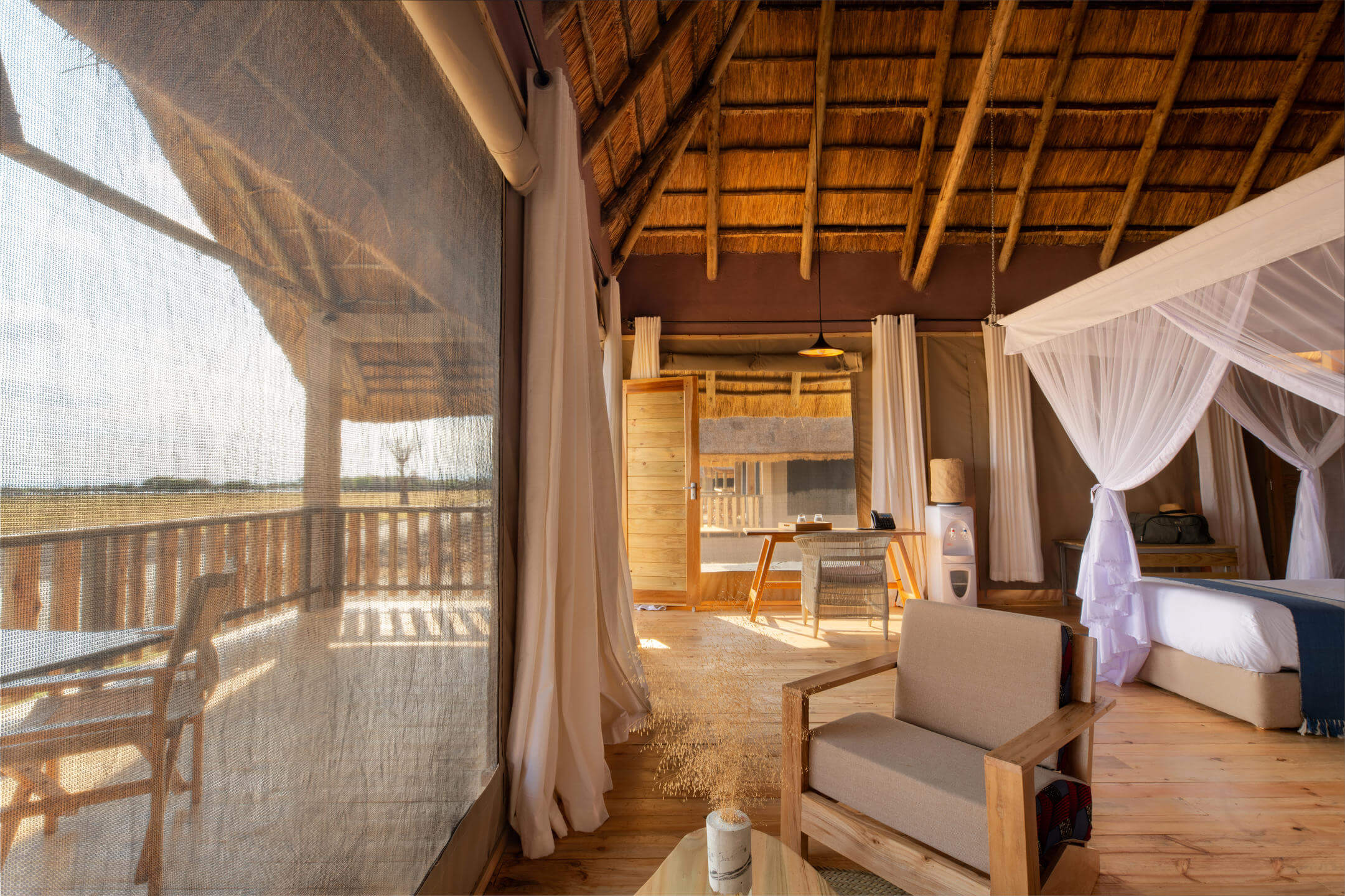 Tented Rooms (Superior / Double Twin): There are 20 of these classic safari tents. Ideal for couples or solo travelers, they offer an authentic “under canvas” feel while providing full comfort and privacy (Max 2 guests).
