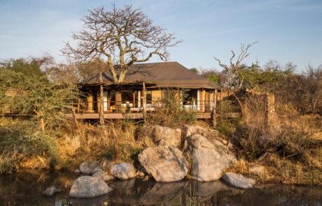 Legendary Mwiba Lodge is located in the Mwiba Wildlife Reserve, which is a private concession adjoining the Southern Serengeti in Tanzania, overlooking the Arugusinyai River. The reserve is close to the Ngorongoro Conservation Area and offers a luxurious safari experience in a secluded, wildlife-rich setting.