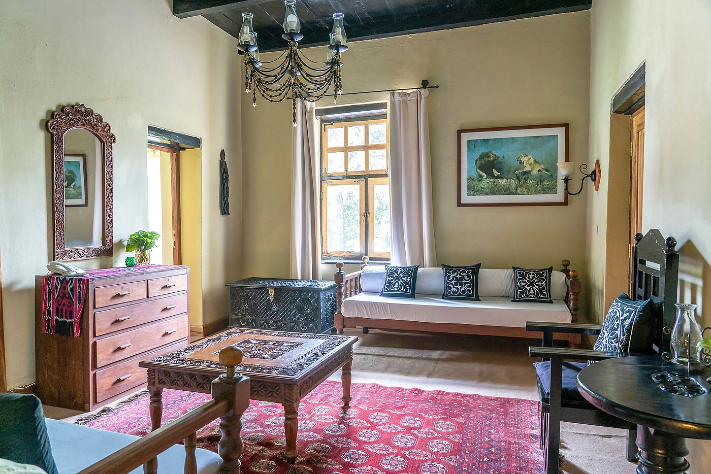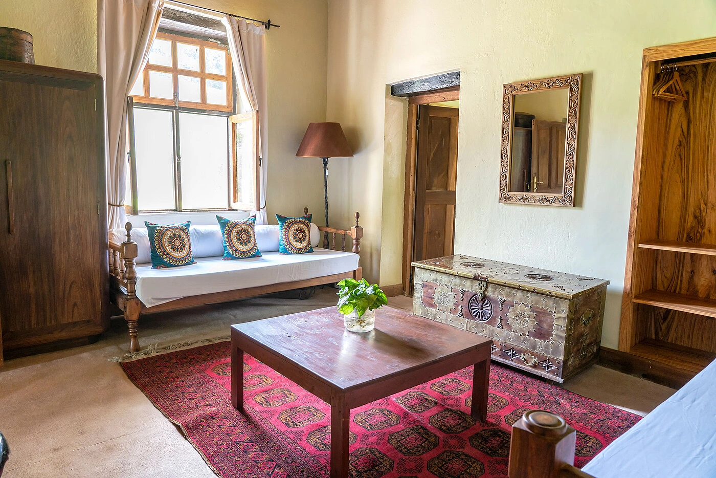 The Garden Rooms, ten in total, are tucked within the lush gardens and offer private verandas overlooking blooming bougainvillea and jacaranda trees. Each room is individually decorated with handcrafted furniture and vibrant fabrics, creating a cozy and authentic atmosphere. With en-suite bathrooms, spacious layouts, and optional additional bedding, these rooms are perfect for couples and small families.